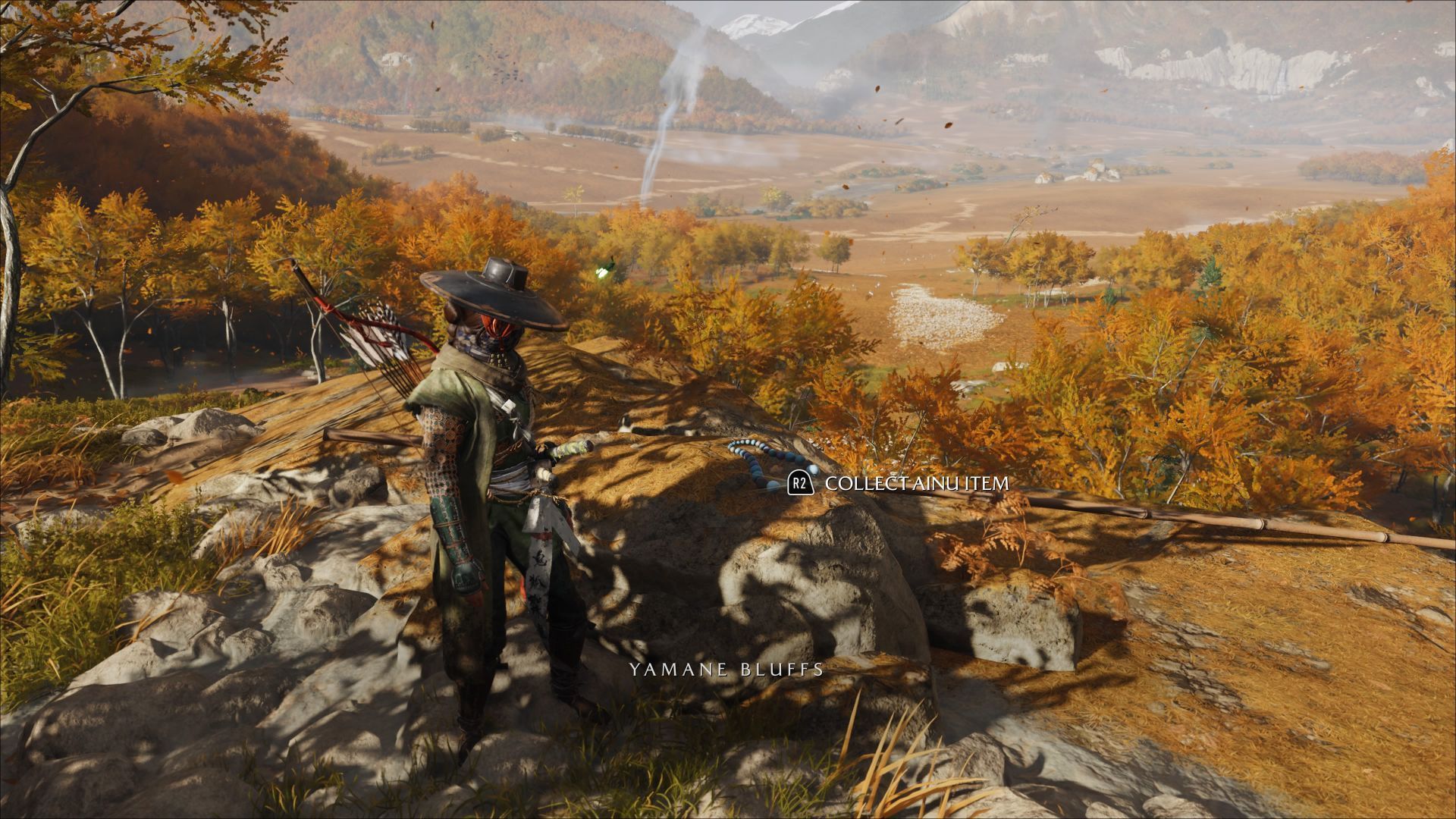 Head to the cliff in the northwest of the region, close to the shamisen practice area. Right by the cliff’s edge, you’ll spot several items, including a collectible.
