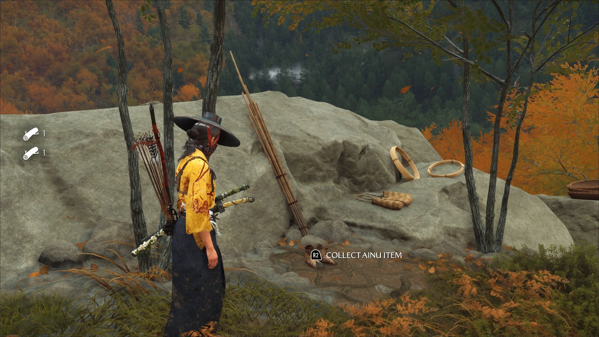 - There are 30 Ainu Items scattered across the island of Ezo, and you’re free to collect them in any order you like. You can find Ainu items easily by looking for glowing flying insects - they appear when you’re close to a collectible (you’ll still need to look around the area though). Another way is to play the Ainu Song on your shamisen.