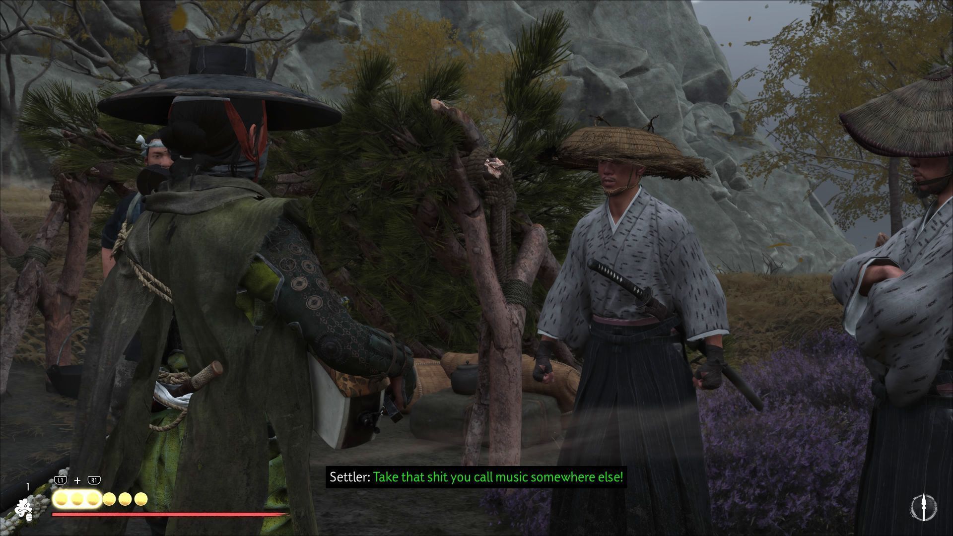 - Smiling Yoshitomo - the mini-boss will join you when you light a fire in the abandoned camp in the southern part of the map. After a short conversation, combat will ensue. After the fight, you will also receive the Smiling Kabuto-Mushi Loadout.