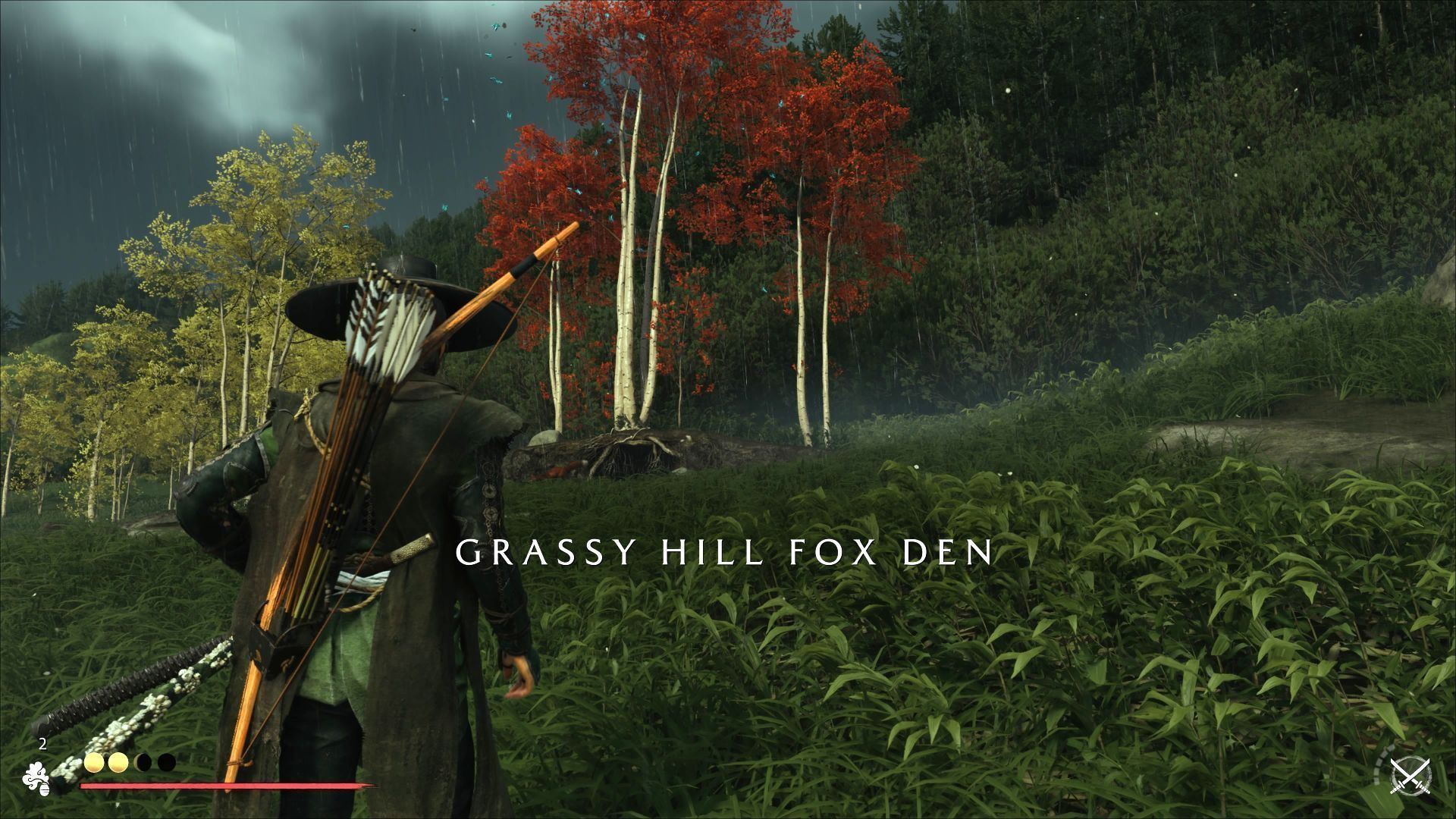 - Winding River Fox Den - the central part of the region. On the way to the altar, you'll need to destroy stone obstacles with the grappling hook. Bow to the statue and you'll receive the Charm of Opportunity.