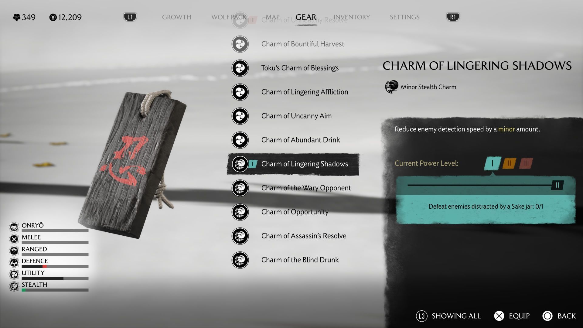 - Stealth can also be made easier by wearing Nine-Tails armor or equipping the right charms (like the one pictured above, which makes enemies detect Atsu slower).