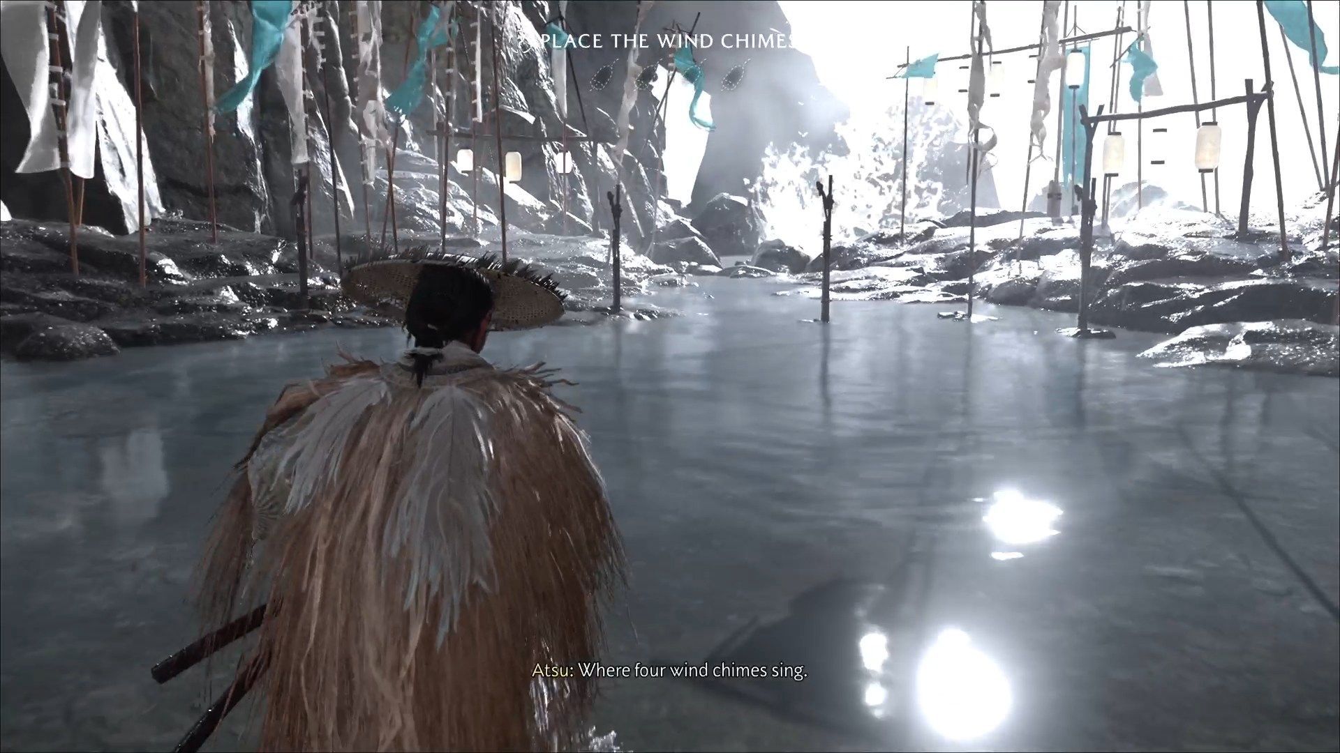 The marked trail will take you to a small cave where you must hang all the wind chimes on wooden poles. In this way you will summon the Undying Samurai and fight him.