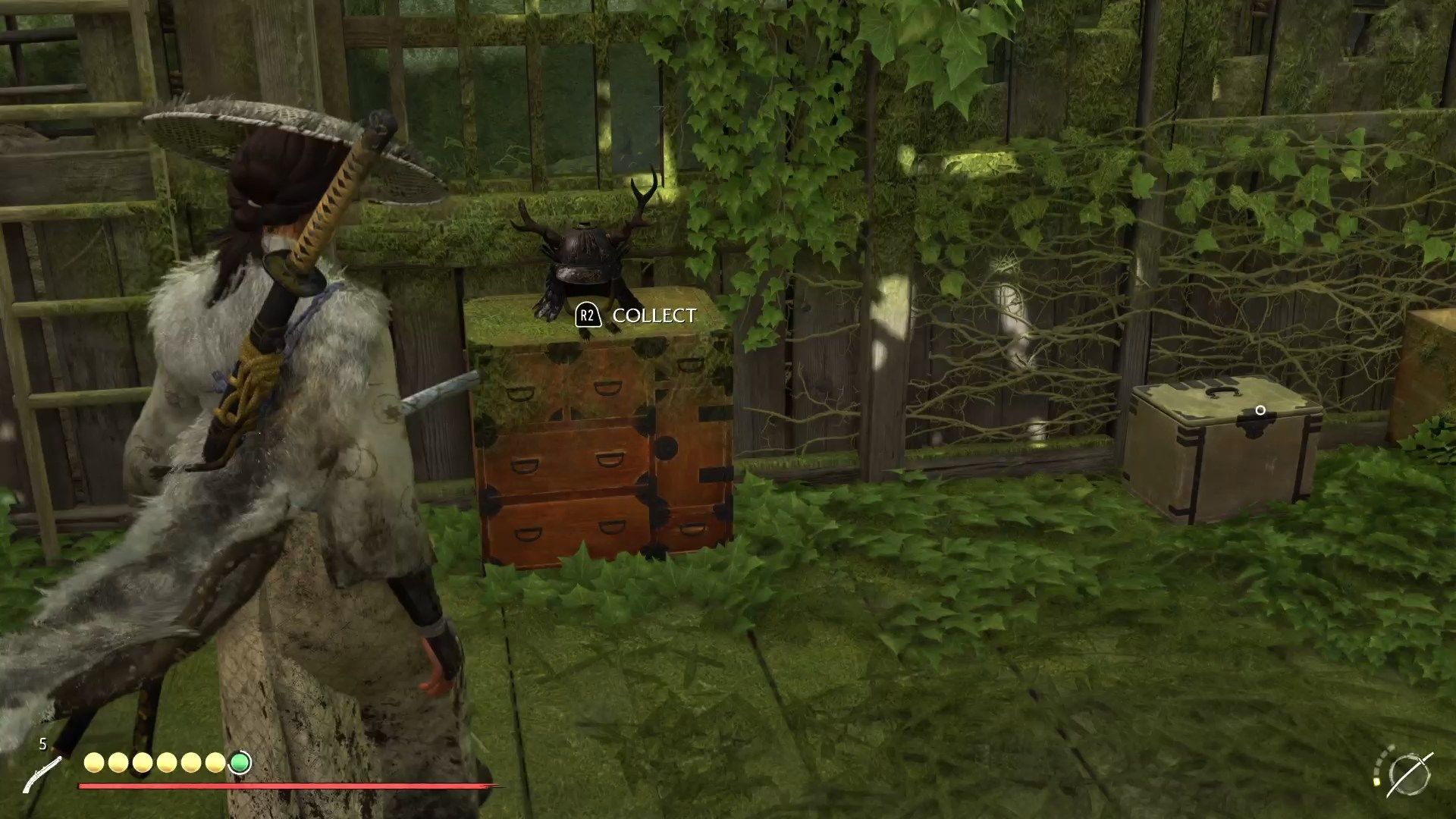 During the quest you must follow the gray fox, who will lead you along a linear path through a hidden grove where Jin Sakai lived out his final years. Along the way, you'll pass an abandoned hut, where you'll find Jin's helmet. You can take it with you.