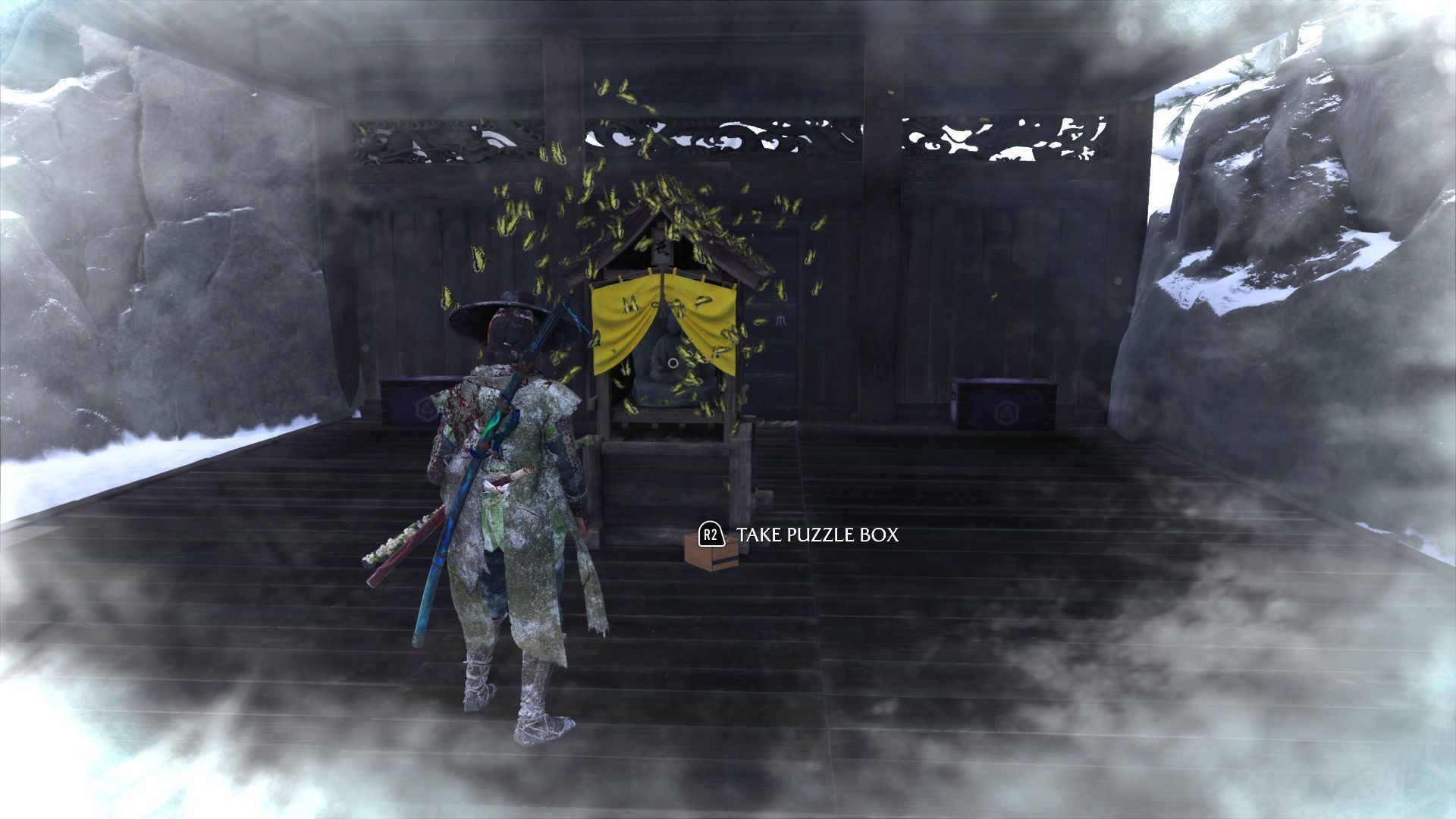 Puzzle boxes are collectibles that appear exclusively in the Teshio Ridge region, which is the northernmost area where Atsu is trying to fight the Nine Tails group while simultaneously trying to catch Kitsune. You can find puzzle boxes while taking over enemy locations or do that later (even after finishing the storyline).