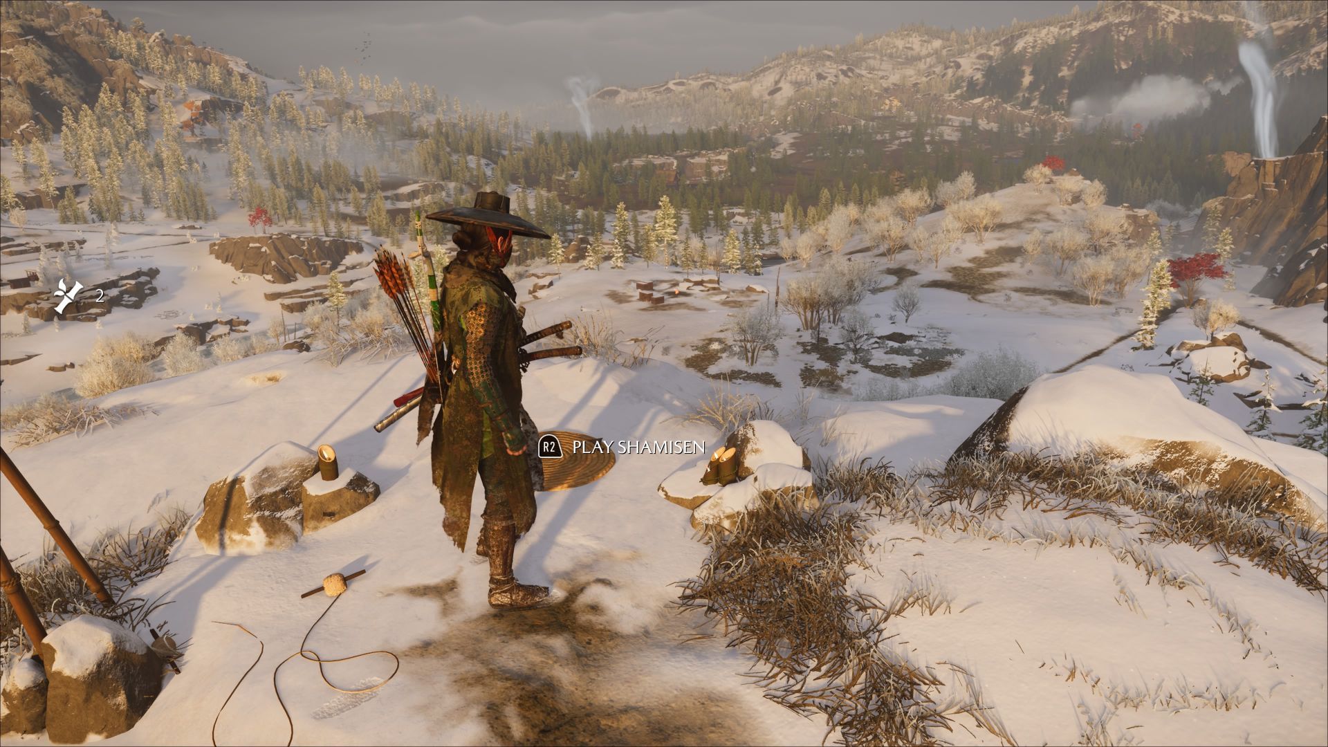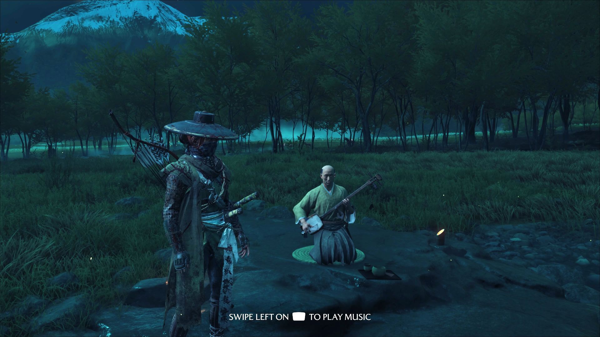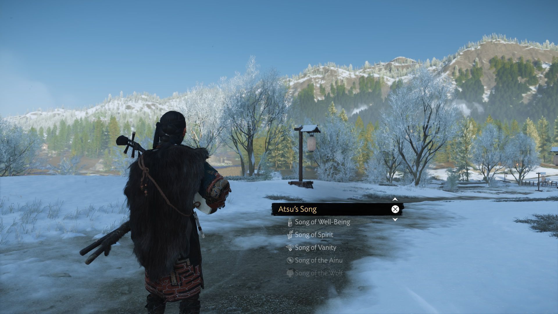 - Visit the Musician's Camp in the Tokachi Range region. Here, you'll encounter a ronin playing a shamisen. You can give him some coins and then play the song for him. Eventually, Atsu will learn a new melody.