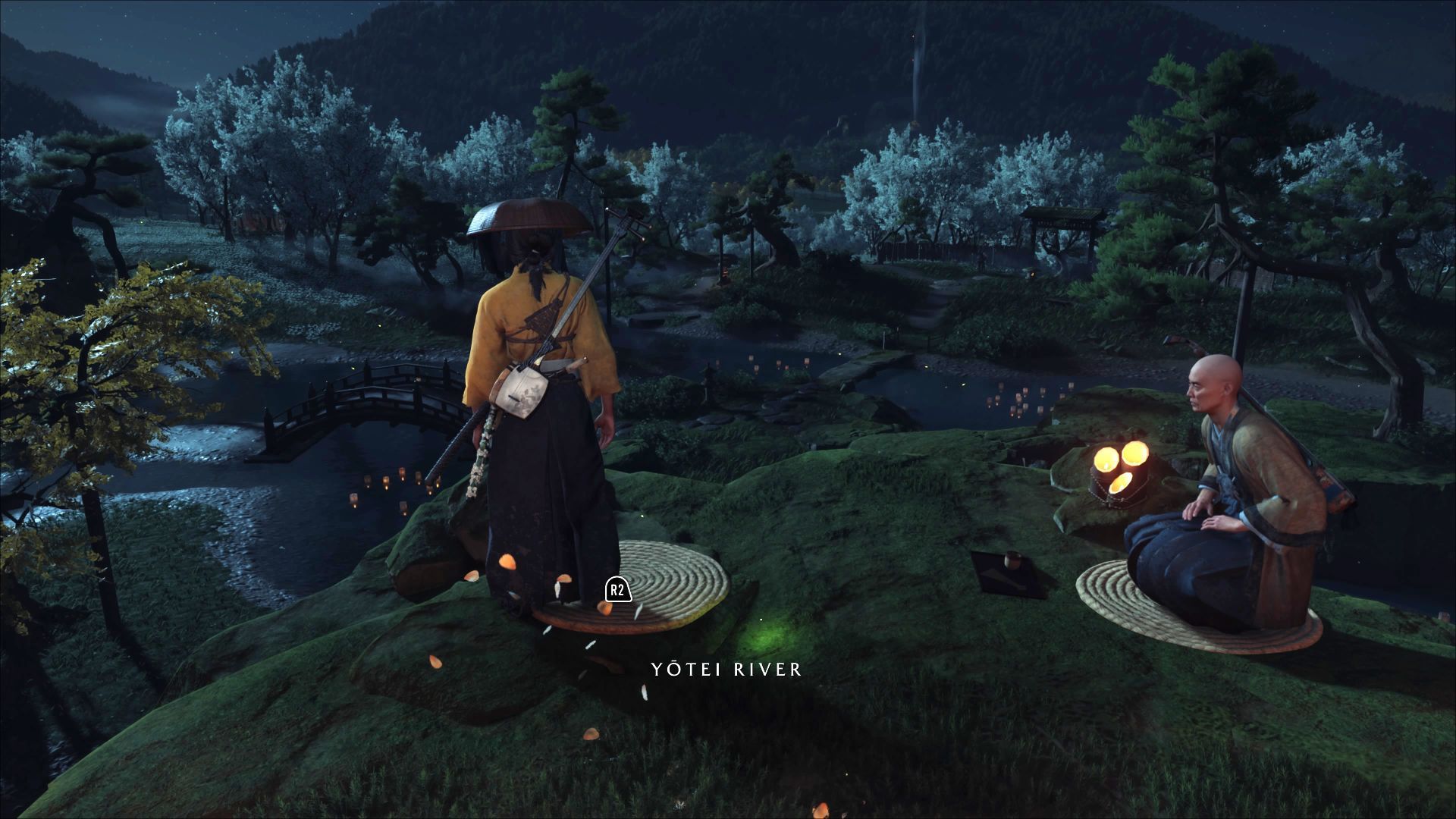 - Visit Master Heijiro's Garden - it is one of the locations in the first region, Yotei Grasslands. Atsu will associate this place with her childhood, and you can hold the touchpad in various places in the garden and see scenes from the heroine's past. Eventually, you'll meet Heijiro in the present and reach a place where you can play a song together.