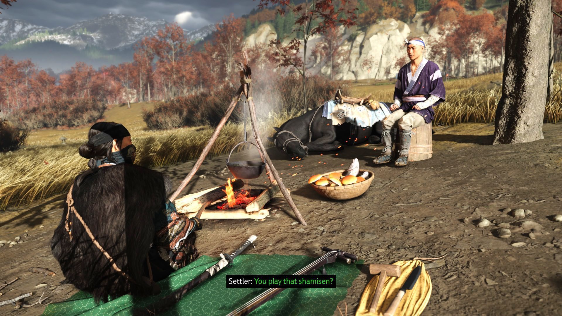 - This song doesn't unlock at a specific location in the game. During the campaign, regularly set up a camp (hold left on the D-pad while riding a horse – you must have enough space around you). After setting up a camp, a villager may appear, talking with Atsu about the shamisen – this is random. This encounter will prompt Atsu to play a new song, which will be added to your collection.