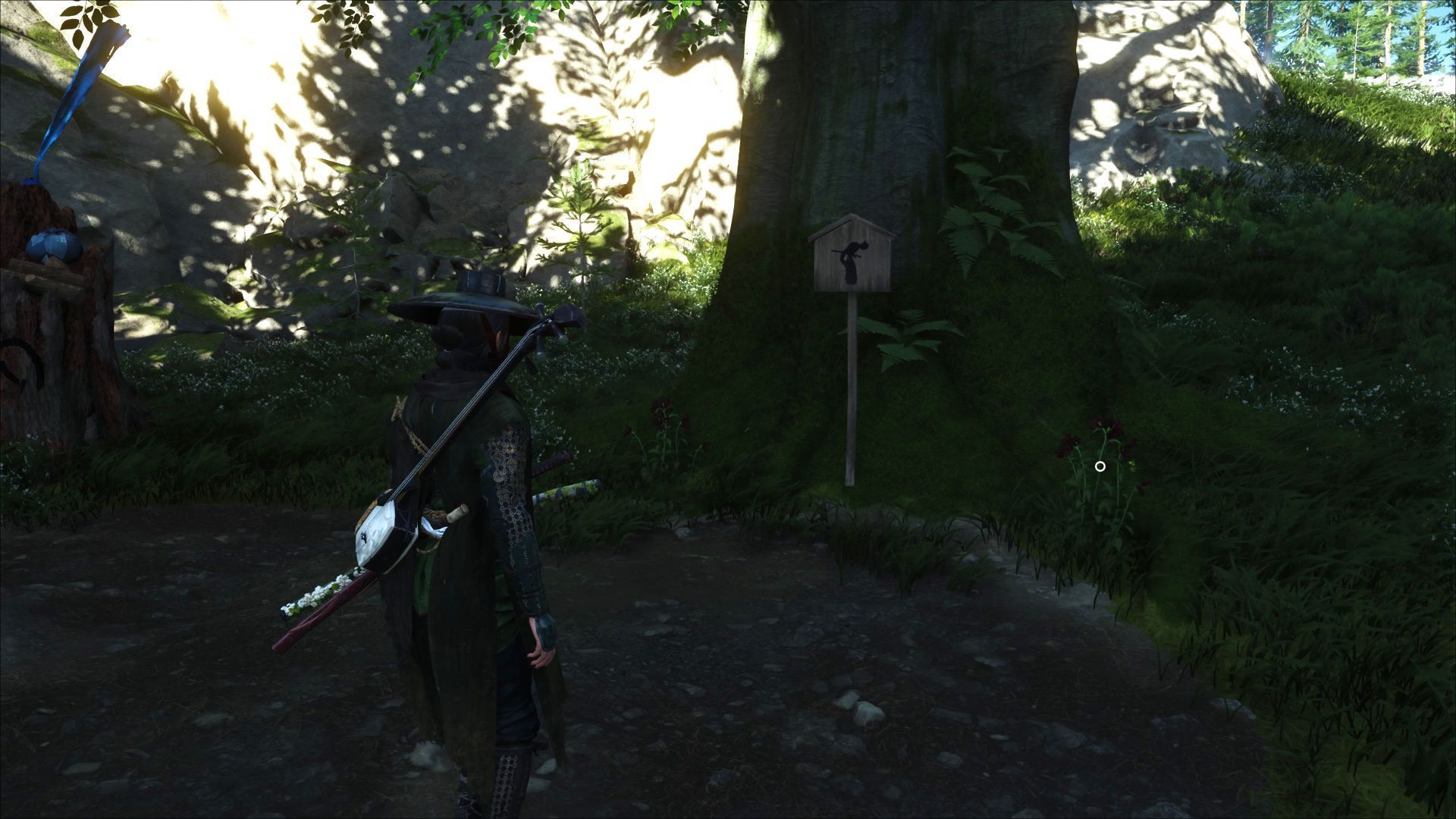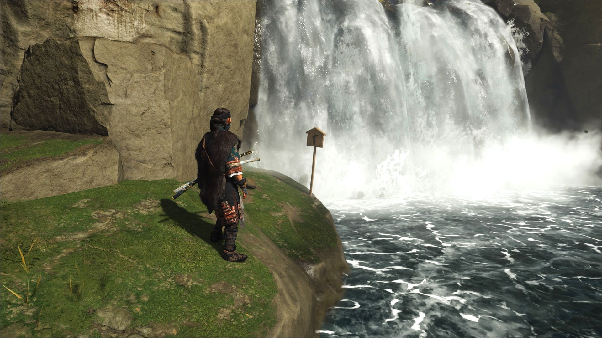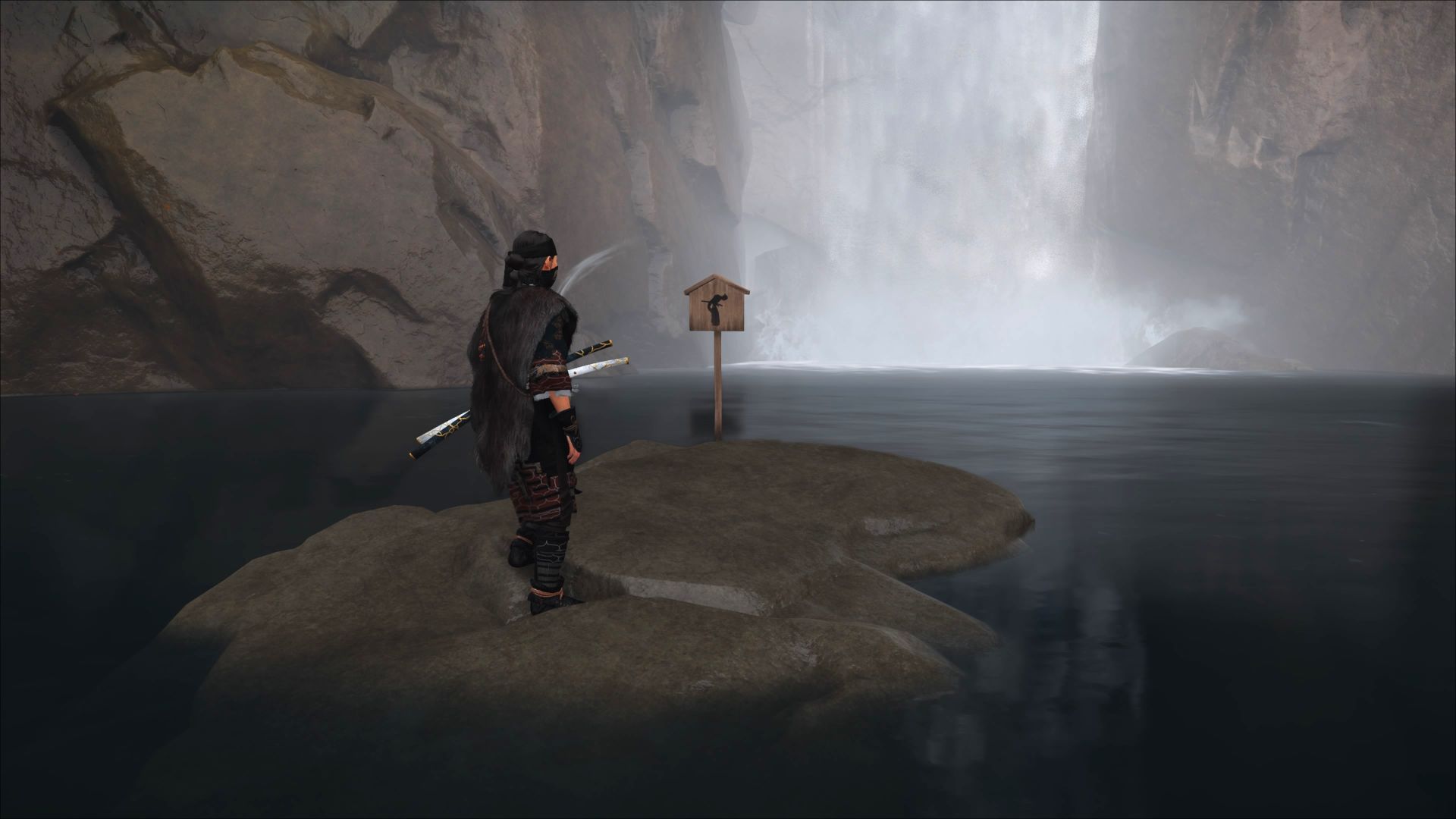 The sign is next to a waterfall at the northern end of the region, near the gate to Ishikari Plain.