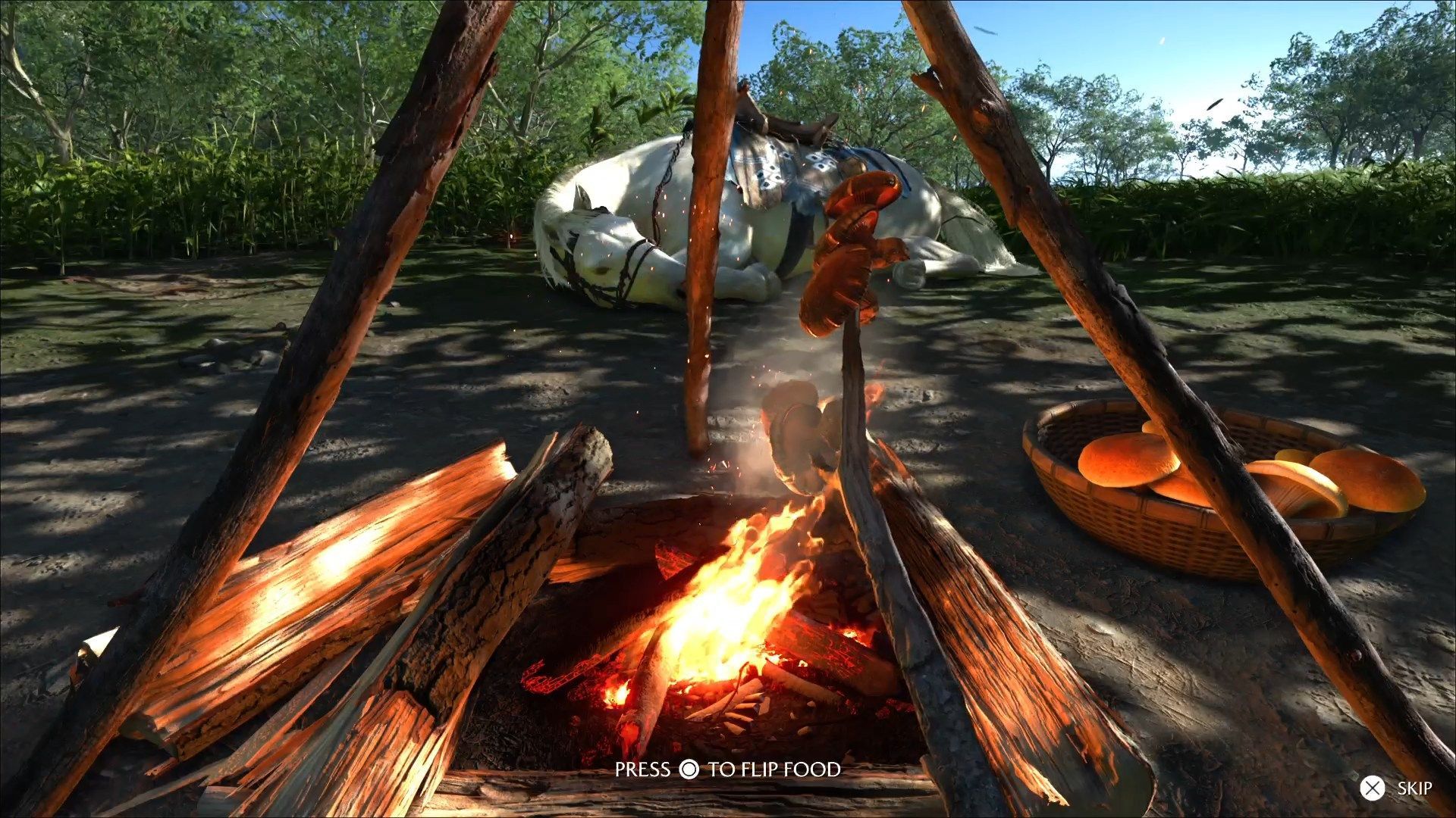 You can set up camp almost anywhere, except for when you are in settlements and similar locations. Setting up camp is free and fully restores your spirit. While camping, you can change the time of day, craft ammunition, and meet adventurers and wandering traders who will join you at the campfire. The most important activity, however, is cooking - it will give you a temporary extra spirit point and a random bonus (small if you cooked mushrooms, large if you cooked fish). As long as you collect all the items you come across along the way, you should always have food to cook, so cook whenever your previous food bonus runs out.