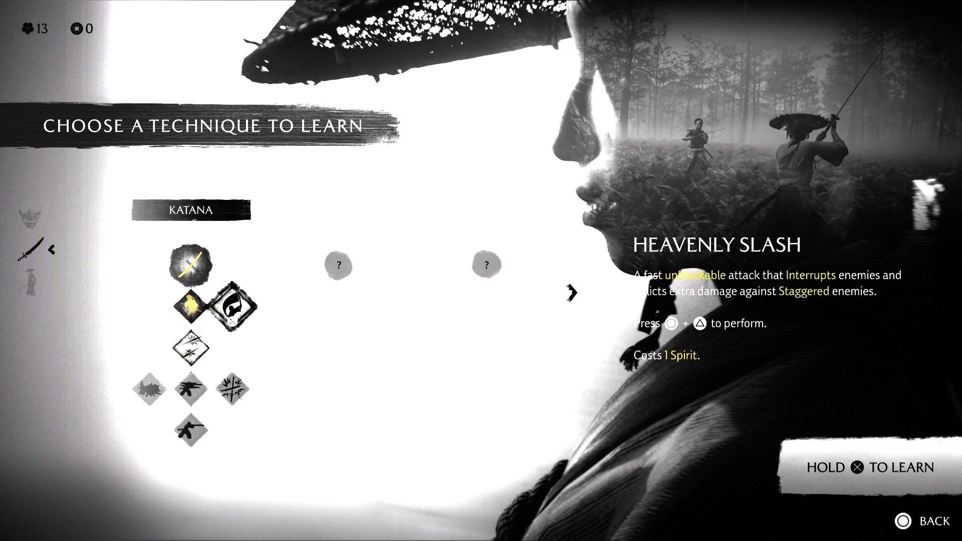The skill points Atsu earns can be spent on many useful upgrades. Some of them are powerful special attacks that require spirit to use. At the beginning of the game, it is best to ignore them - although they are very useful, at the beginning of the adventure you have very little spirit, which is necessary for healing. So spend your first skill points on other upgrades, and come back to these skills once you have gained more spirit.