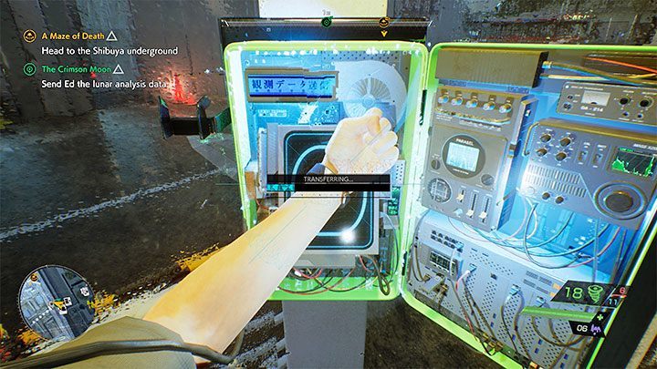 To finish this quest, you have to reach the marked telephone booth. Interacting with it will allow you to send the data you've collected.