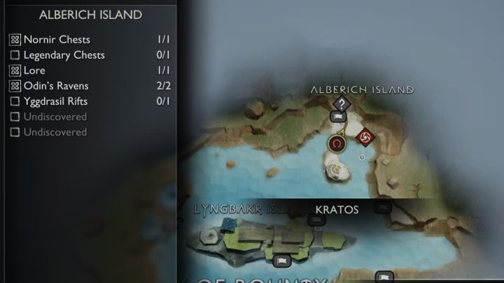 Here you will find all collectibles from the Alberich Island region in Svartalfheim in God of War Ragnarok - Odin's Ravens, Nornir Chests, Lore and Legendary Chests.