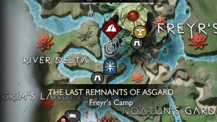 The marker for this activity will appear on the map in the endgame phase, i.e. after completing the main story - the remnants are southwest of the camp. The easiest way is to choose the Mystic Gateway in Freyr's Camp and approach the secret after arriving by boat to the shore.