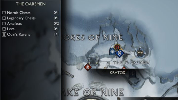 In God of War Ragnarok you will find yourself in the region The Oarsmen in Midgard. This page includes all the collectibles - Odin's Raven, Nornir Chest, Artifacts, Legendary Chest and Lore.
