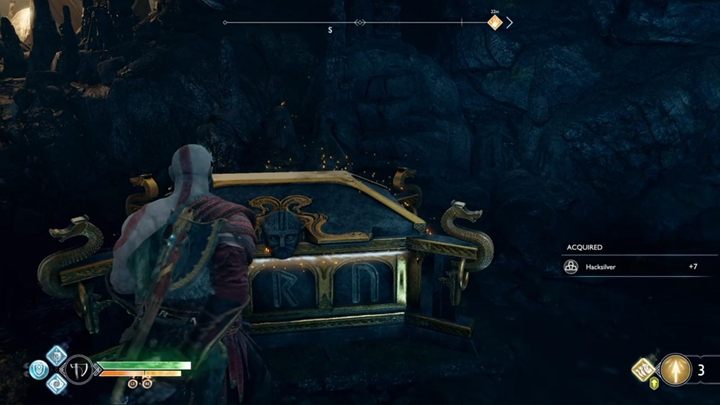 Commentary: The chest can be found near witch's hut. First you must restore the ruins, then move the Winds of Hel to the second pillar and then use it to activate the sign with runes.