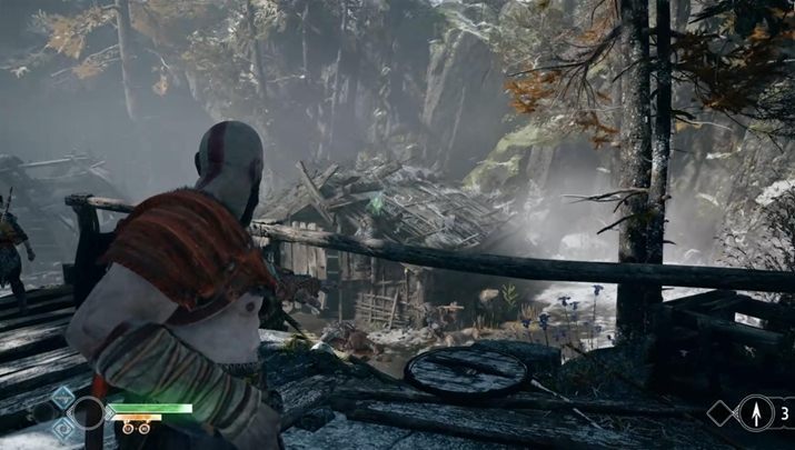 Commentary: The raven is on the hut near the destroyed village you entered after you shot the boar.