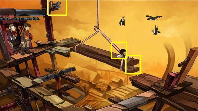 As the red Rufus, talk to Toni, who is sitting in the tank again. Take the prescription attached at the bottom of the monitor. The recipe of this rope seller. You will get a rope. Go to the publisher's office. Talk to Barry (his equipment will automatically include fingers zoom in). Walk now in front of a rebel camp, where you can use your fingers to zoom on a character moving from afar. It's Bozo's Child! Notify Barry. Attach the rope to the hook, click on the Bozo Child and the board on which it sits. Click on the end of the rope.