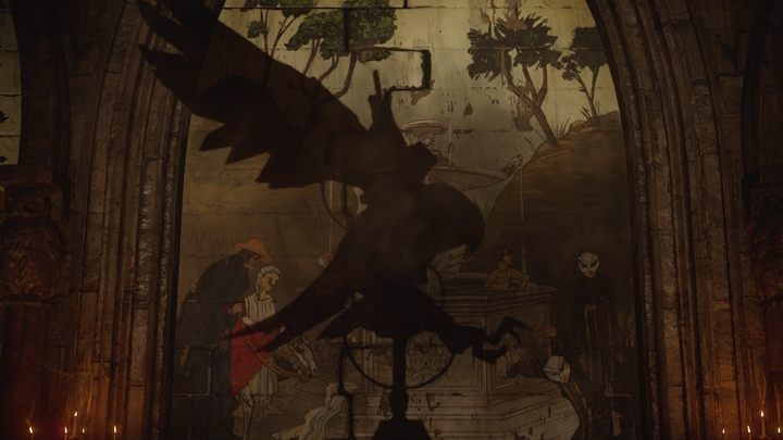 After entering the basement you'll have to solve yet another puzzle. Activate the spotlight and set the shadows to match the one pictured above. That's all - once you set them up correctly, the hidden door will open. Defeat a group of enemies on the lower floor - watch out, they can use powerful elemental attacks.
