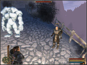 ![]() | You have to talk to Hogar and provoke a duel. This duel is similar to the arena fights, so you can't kill Hogar (you will need him in the future). Nordmarian will not attack you unless you kill Hogar. |