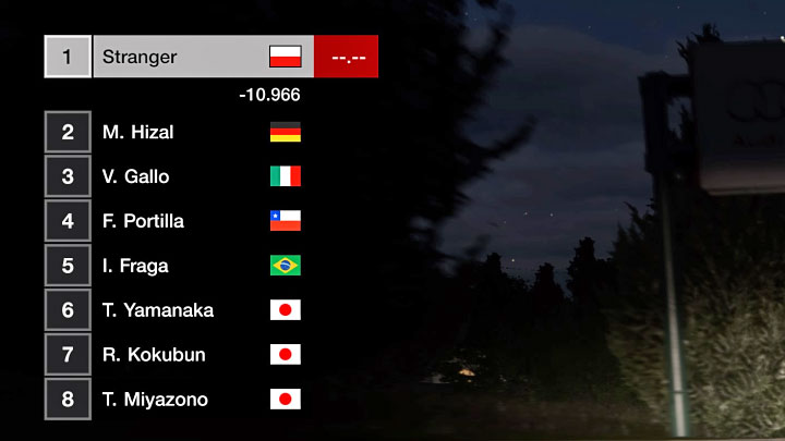 Comment: This is the opposite of the previous trophy - you must win a race with at least a 10-second lead. You can see the current state of the race in the upper left corner of the screen. The game always shows you the time loss of the driver behind you (example pictured above).