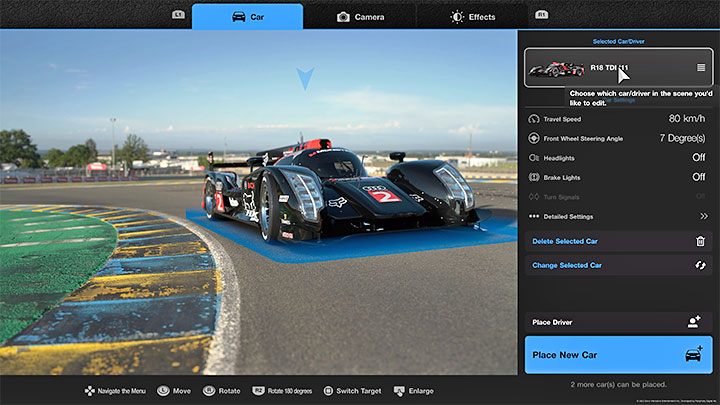 Enter Scapes mode and use the Circuits filter when searching. Go through the landscapes list and choose the French Le Mans track. Choose the Audi R18 TDI from the list of owned vehicles, place it somewhere in the frame and take a photo.