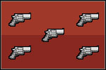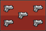 | Twin Pistol [M: 34 || P: $450 || D: 24] Grabbing a second pistol reduces your accuracy but at the same time increases your rate of fire and the number of shots you have to take. Gangsters don't usually run around with two pistols so the best way to acquire them is by making a purchase. |
