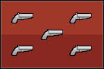 | Pistol [M: 17 || P: $200 || D: 68] The most popular gun in the game. Cops use it against you on every possible occasion. The pistol's drawbacks are rather medium range and not very great fire power. Among its merits are a fair price and a relatively capacious clip. |