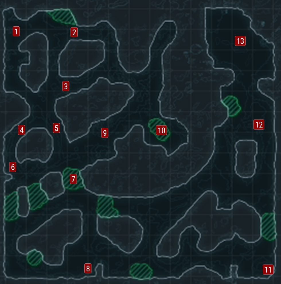 You start in the North-Eastern part of the map [1]. The entire area is criss-crossed with Beta fortifications that are guarded by small groups of units. The disadvantage here is that wherever you go, you run into the enemy. The advantage is that you are not going to be attacked too often.