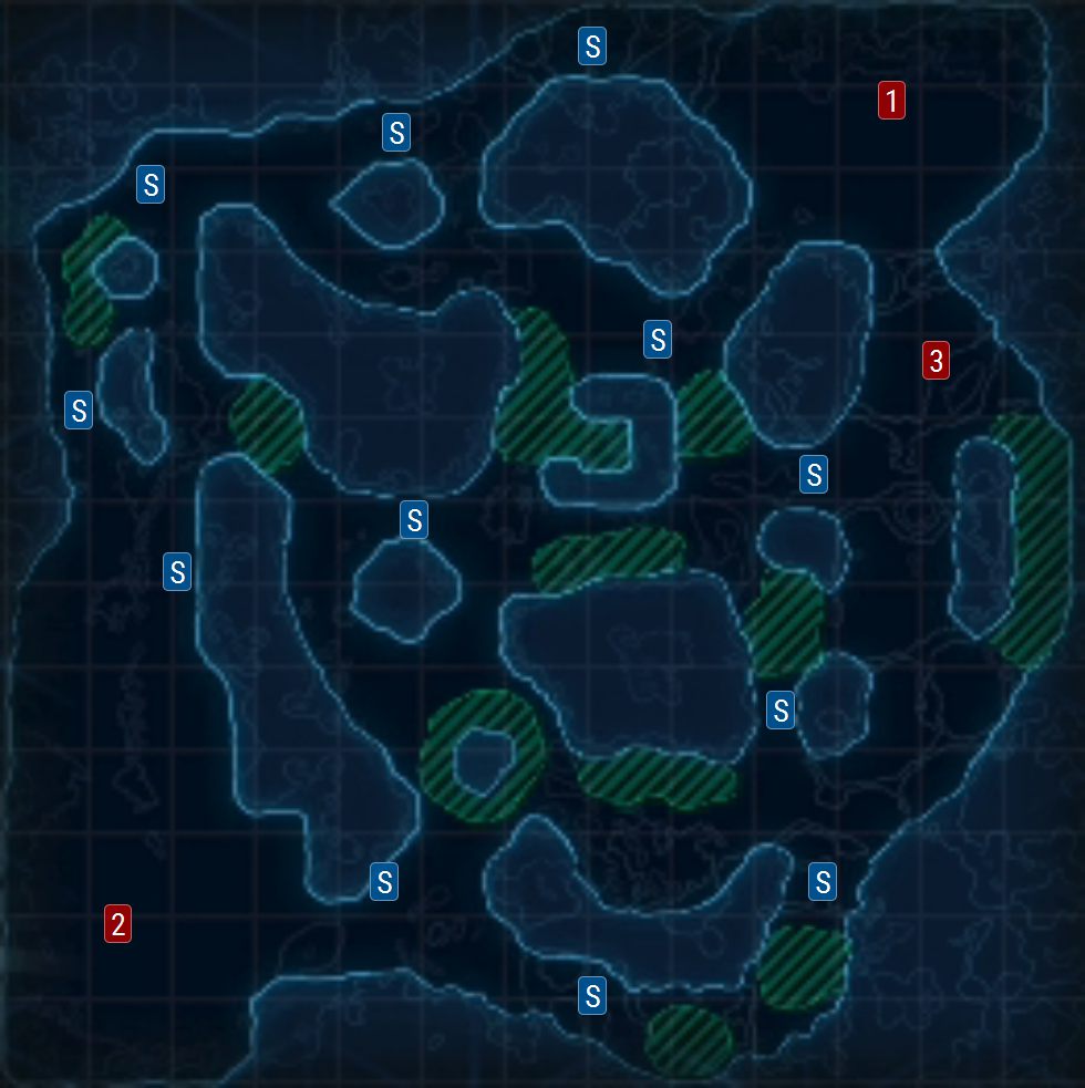 On the map, there are five possible Singleton's locations. In the remaining four, there are small groups of allied units. There are five spots, but their pool is slightly bigger (blue points on the above map), due to which each mission is a bit different. If the outlay is disadvantageous to you, e.g. all of the points are far away from the base, start the mission again. Each time, you should assume that Singleton is in the most distant point, as viewed from the base. If there are more such points, the chances are 50-50.