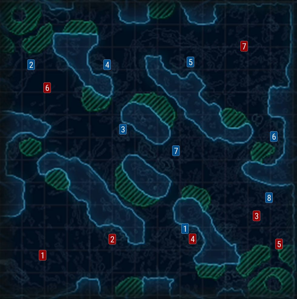 Along your path, towards both of the bases, you will stumble across Catalyst containers [blue markers on the map]. In each one, there are 200 units of resources, which go to waste, if your supply is full. Containers come in clusters of two or three and they can be picked by any ground unit.