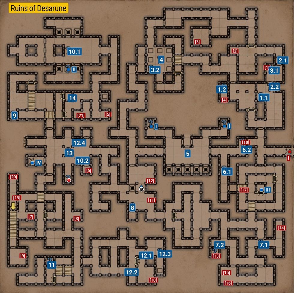 Ruins of Desaure is a location you can enter directly from the Sleet Island. In this area you will have to find two iron keys (10.1) (12.3), which will help you get on the lower level. You will encounter some new enemies here, as a green slime, it may poison you, what will stop health regeneration. A ranged-attacking ice elemental and skeletons. There are some ways by which you will be able to enter the Archives, but this level of ruins is needed only for solving a riddle. It is worth jumping down the hole in the room with the skeletons, because you will find yourself in the special area of the Archives. After putting the keys in the right spots, a passage will be opened and you will gain an access to a Power Gem.