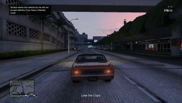 After reaching rank 10 you will get an access to the missions from Simeon. In these missions you will have to collect cars for him. The list of the vehicles you will have to bring to him will be given to you via a SMS. On a day you can collect only one car. Getting into a wanted car will come with a notification. Now all you need to do is to get the car to the garage in the Los Santos Customs and change its paintwork (choose the cheapest option for about 780$). From there, go to the garage in the docks to finish the mission. You cannot be pursued by the police and if the vehicle is damaged you will have to pay for it, so be careful.