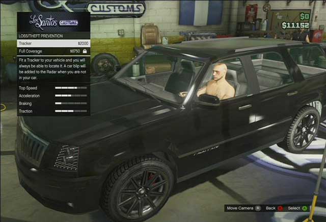 When you enter a LSC garage, you will see a list of car modifications. To mount a tracker, choose option Loss/theft prevention. This will roll out another list with two options. Click on Tracker option. This is it. Now you can always find your car. It will be marked on the map with a car icon. The first tracker is mounted for free, every other costs 2000$.