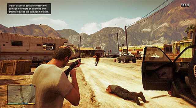 Additional information: The beginning of this mission may be misleading, because you control here neither Michael nor Franklin and, for the first time in the main campaign, you take control over Trevor. This mission has been constructed in such a way, so as to prove how violent and mentally unstable a person Trevor is - you will have to handle a car chase, shootout and even an attempt to push a trailer into the river.