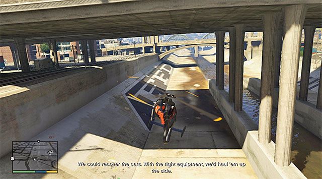 While following the trucks, it pays off to switch to the cinematic camera on a regular basis, which will show you the view from Lester's camera. It is, all in all, a good idea because using this view, will make it easier to fly the chopper in a straight line. Along your way, look out for bridges and fly underneath, at least, one of them. Try not to lose the visuals of the vans, because you will not be able to spot them on your radar but, at the same time, do not exaggerate with following them too closely, especially that they will be making frequent stops for, e.g. traffic lights.