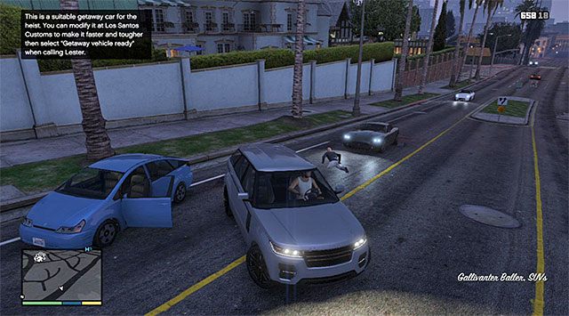 Regardless of whether you have decided to make the upgrades or not, you need to contact Lester. Select him from your contacts list and confirm your readiness to use the stolen car (Getaway vehicle ready - the above screenshot). You can now reach the marked underground parking lot. Leave the car and walk away from here.