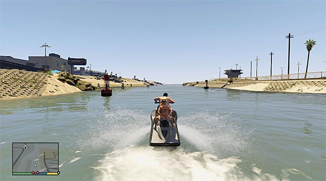 Keep steering ahead and do not waste time to explore side-branches, because they will lead you nowhere, initially. The ski jets chasing Michael and Tracy should give in somewhere around the area shown in the above screenshot. The only thing left for you to do is return to the beach neighboring the pier, with Jimmy waiting in it. Steer into the deep sea and go north. Stop the jet ski in the marked area, which will conclude this mission.