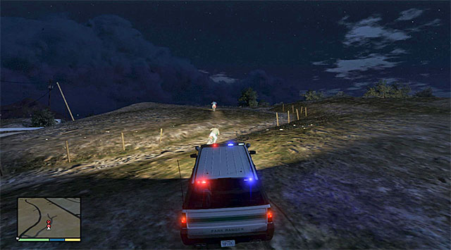 Listen to the conversation and get into the SUV (Park Ranger) to start your chase after the person escaping on an ATV. Just like in the previous mission, you could lay fire on the ATV, using an automatic weapon, which will result in the damaging on the vehicle. After the rider stops the ATV, get out of the car and make sure that Trevor stuns the man with his stun gun.