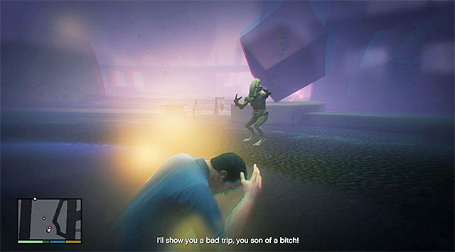 You are going to play a very hilarious mission, because, due to smoking a specific variation of marihuana, Michael will be experiencing serious hallucinations, whose effect is the appearance of hostile creatures. Use the minigun to eliminate these creatures and pay attention especially to the creatures appearing on ledges above Michael.