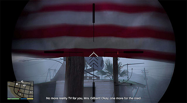 Take a sniper rifle from Cletus and head for a balcony from where you begin firing. The plan is to hit at three satellite dishes. The most problematic should be the one shown on the screen above, because it's covered by the American flag.