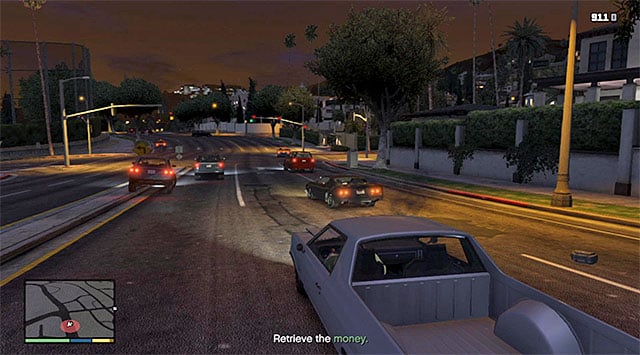 You may receive a message from the manager of the property, concerning the fact that it has been robbed. After you reach the place (letter P on the world map), you should notice an escaping car, and you have to follow it (it would be good if you drove a fast car). Shoot the thief (note - he may respond with fire) and retrieve the stolen cash.