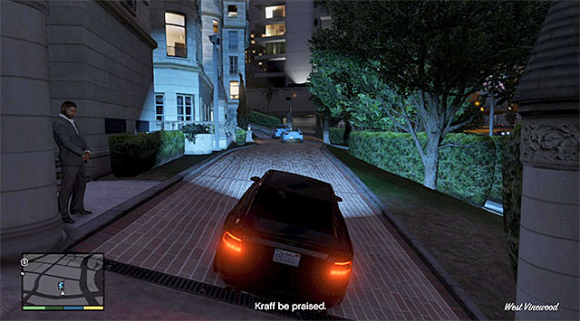 Listen to a short conversation with Cris, to learn that Michael is supposed to join a convoy escorting the cash, amassed by the cult, to the place where it will be loaded onto a chopper and taken away from the country. Get into the vehicle and follow the vehicle to reach, after several moments, one of the side alleys in the Northern part of the city.