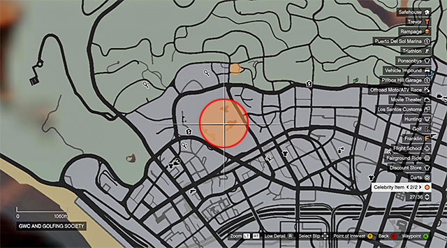 Location: This mission becomes available after the completion of the Nigel and Mrs Thornhill optional mission. During your exploration of Los Santos, you may notice the big orange circle shown in the above screenshot. It directs you to a golf course located in the Northern part of Los Santos (the grounds of the golf club).