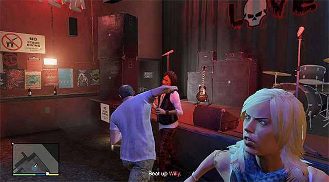 After you get there, enter the venue location, where a gig from the Love Fist is scheduled. First of all, go to the room on the upper floor. Once here, listen to the conversations of the entourage of the rock band, because this is necessary to complete the mission in its fullest.