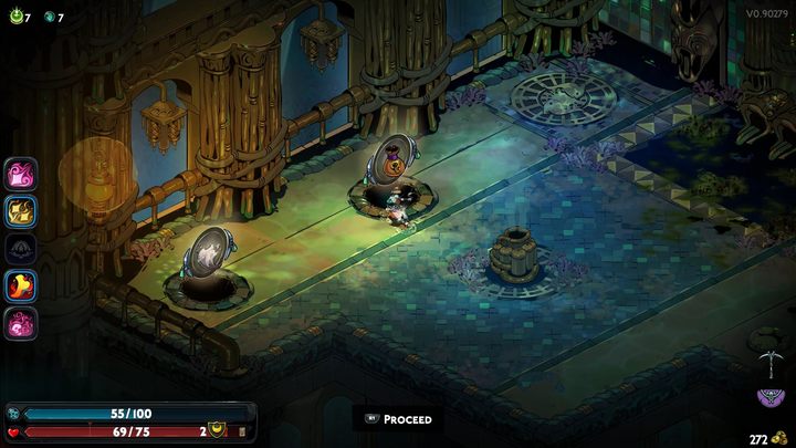 Boons are the most common rewards you will encounter. The game features many gods and mythological heroes who are ready to give you boons, each with different properties. The symbols of the boons always have a specific color and refer to the power of a given god - e.g. a golden thunderbolt for the boons of Zeus, a blue trident for the boons of Poseidon, a pink heart for the boons of Aphrodite.