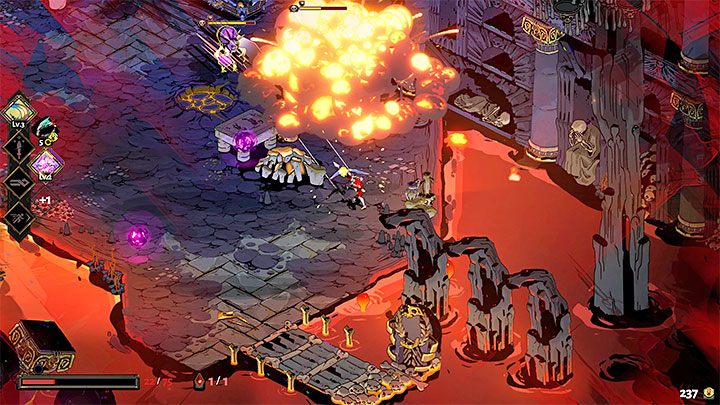 The bow may cause you some trouble in its default form because this weapon does not allow for aggressive gameplay, unlike most weapons for close-combat. An additional complication is that Zagreus stands still while charging a powerful arrow attack and he could end up being an easy target. You can try to reduce this problem by finding upgrades to the rate of fire.