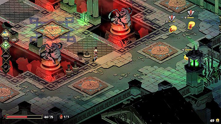 In Tartarus, all common types of chambers you will visit throughout the game appear. We described the most important ones on a separate page, Door symbols - what do they mean? It is recommended to plan the character development from the very beginning of the game and do not miss the opportunity to visit the rooms with the most useful items.