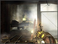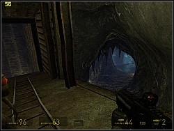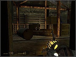 The vort will start up the power generator and you will be able to keep moving. You will get to the trollies standing on the verge of the abyss. There are some crates with goods in them. There are 2 ways of getting the crates. The first one is jumping inside, collecting the goods and jumping outside. The other one is getting the crates from the trollies with the gravity gun. | ![]() |