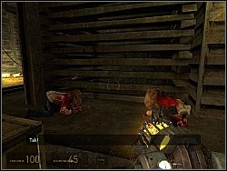 When you're there, the vort will join you. Before moving on, collect the goods from the crates. You can find them on the boards. It's good to get them with the gravity gun. Afterwards, go to the fence. When you're close enough, the zombies will stand up. Before you destroy the planks blocking your way, kill all the zombies. | ![]() |