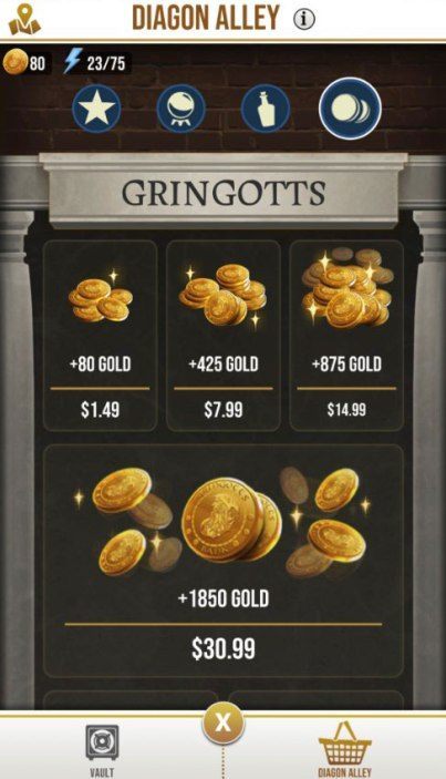 Virtual currency, which is issued in packages worth from 1.49 Australian dollars for 80 gold up to 160 AUD for 10 thousand gold pieces. For virtual currency, you can buy anti-cataclysmic sets, in which in addition to gold you will find potions, energy required for casting spells, and keys. For gold you buy boosters that allow you to find more items in the area, solve new problems, treat wounds or restore magical energy.